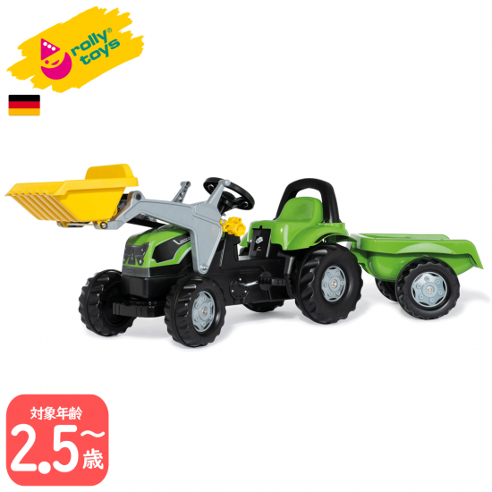 • ■商品説明:デューツ社ライセンスの乗用ペダルカー。軽いこぎ出しで安定感のある4輪タイプは、三輪車の練習にも最適です。フロントローダーは着脱可能で、荷物運びや農作業ごっこが楽しめます。長く遊べる一台です。